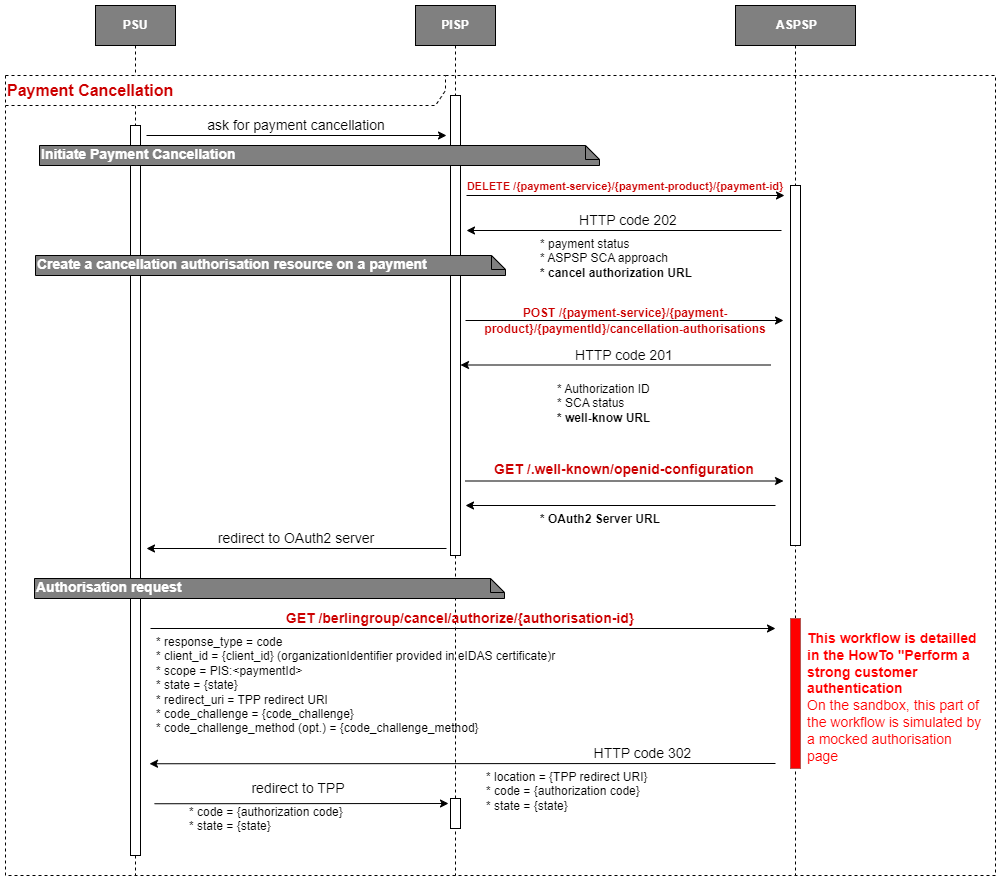 This process to build the authorize URL is the same for a payment initiation or a payment cancellation with SCA.