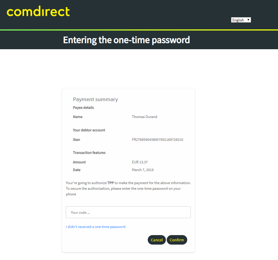 NB : the "redirect_uri" parameter in the URL has to be the same as the "TPP-Redirect-URI" header of the consent creation